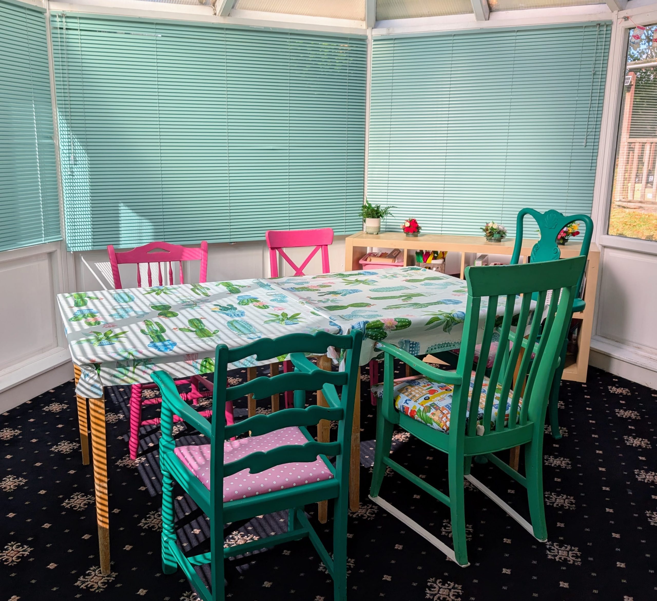 Our wellbeing hub, located in the conservatory, is used for smaller group activities and can also be enjoyed by families when visiting. It is available for private use for special occasions such as birthdays and celebrations.